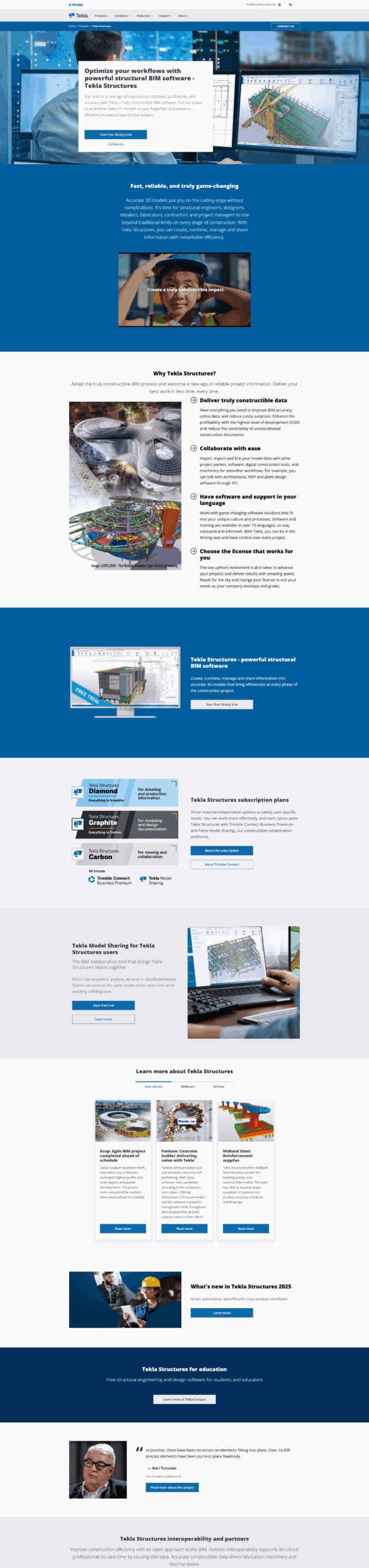 Tekla Structures is a leading structural BIM software designed for creating precise multi-material 3D models of steel, concrete, and timber structures. It streamlines analysis, design, and detailing while enabling effective collaboration and reducing errors. With advanced features like clash detection, automated drawings, and customization, it optimizes construction workflows for efficiency and accuracy.