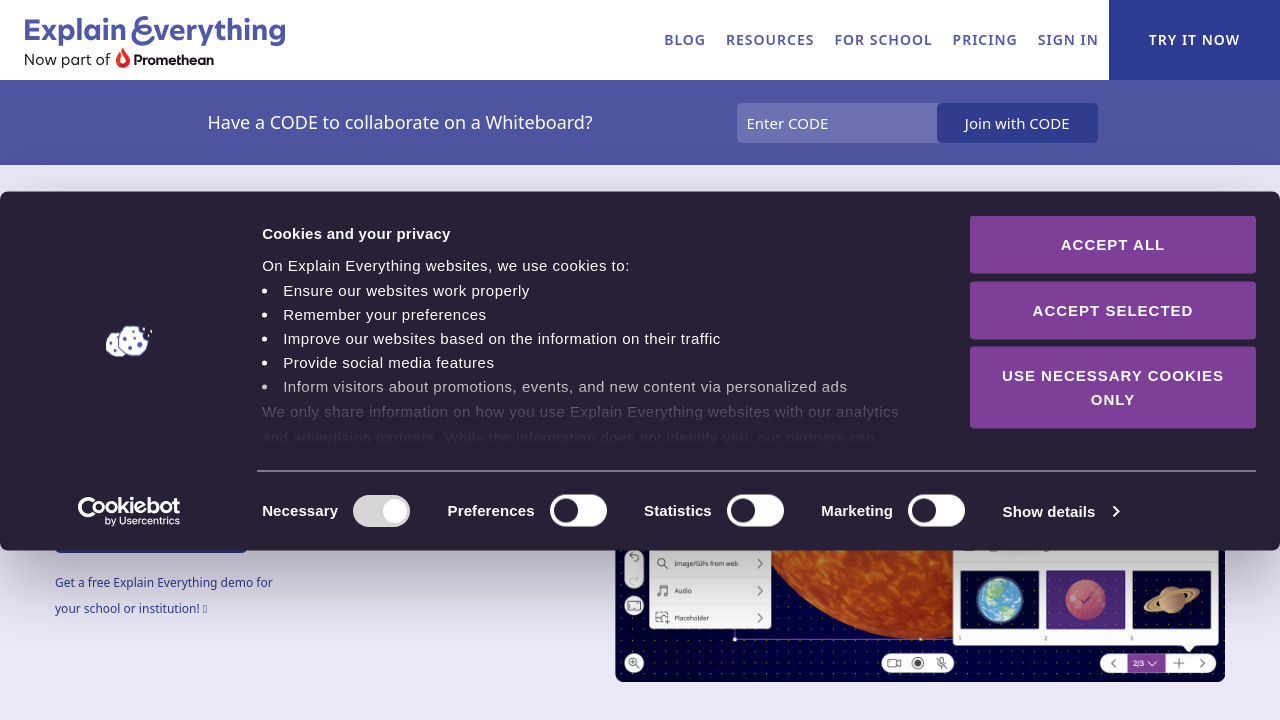 Explain Everything is an interactive online whiteboard designed to empower educators, creative professionals, and teams around the globe. With an intuitive interface and robust features, it transforms the traditional classroom and meeting environment into a collaborative and engaging learning space. This innovative tool has been widely embraced in diverse teaching scenarios including remote learning, in-person lessons, and hybrid models, making it a key asset in today’s educational landscape.