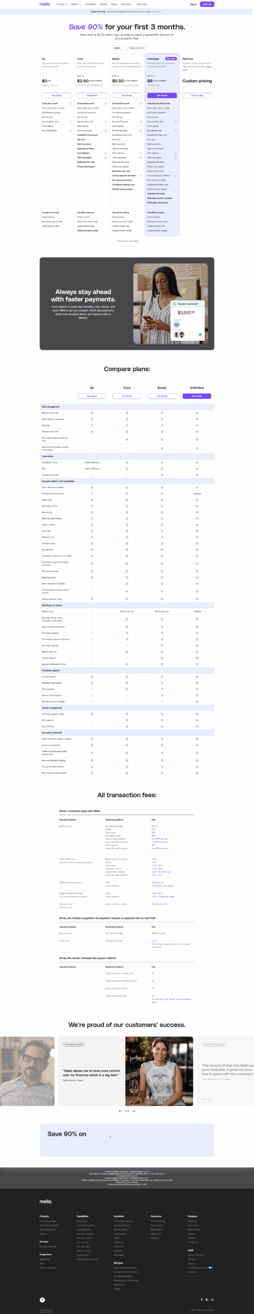Melio is a leading solution in the Automated Payment Processing category, designed to simplify B2B payments for small and medium businesses. Melio enables seamless vendor payments, integrates with accounting tools like QuickBooks and Xero, and offers flexible payment methods such as bank transfers or credit cards. Its automation features, including batch scheduling, payment approvals, and reconciliation, eliminate tedious manual tasks, enhancing financial management efficiency. Businesses can streamline operations while maintaining full control over cash flow and payment schedules. Explore exclusive deals. For alternative options, consider Stampli, QuickBooks Online, and Airbase.