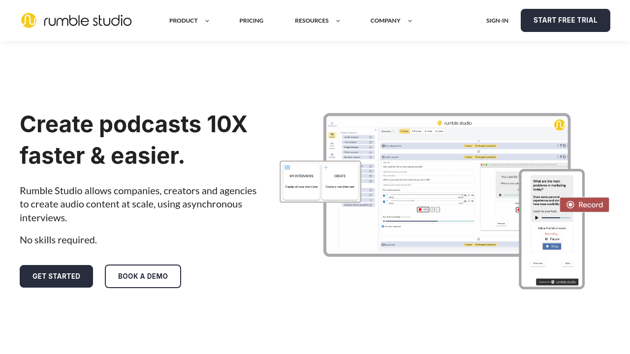 Rumble Studio is a standout solution in the Audio and Video Recording Software category, designed to make podcast creation and asynchronous recording faster and simpler. Based in Paris, France, this innovative tool allows businesses, podcasters, and content creators to record audio remotely and asynchronously, enabling efficient interviews and content production without the constraints of scheduling conflicts.