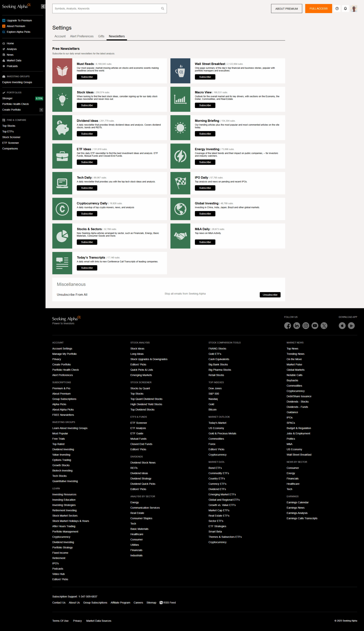 To cancel a Seeking Alpha subscription: