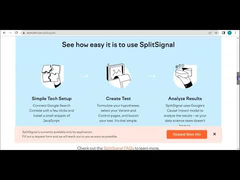 SplitSignal is an advanced SEO solution within the Digital Marketing category, designed specifically for large brands managing significant web traffic (500K+ organic sessions/month). The platform enables businesses to execute SEO A/B testing effortlessly, allowing them to predict the impact of optimizations before implementing changes in production. Built by Semrush, SplitSignal offers seamless integration and innovative tools to promote more informed, data-driven decisions in SEO strategy. Explore exclusive deals.