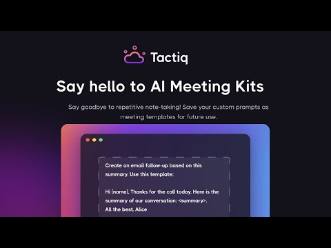 Transform the way your team collaborates, learns, and grows with Tactiq.io. Experience the efficiency of automated transcription and intelligent note-taking, unlocking the full potential of your virtual collaboration. Elevate your meetings with a platform designed to enhance productivity, communication, and information accessibility.