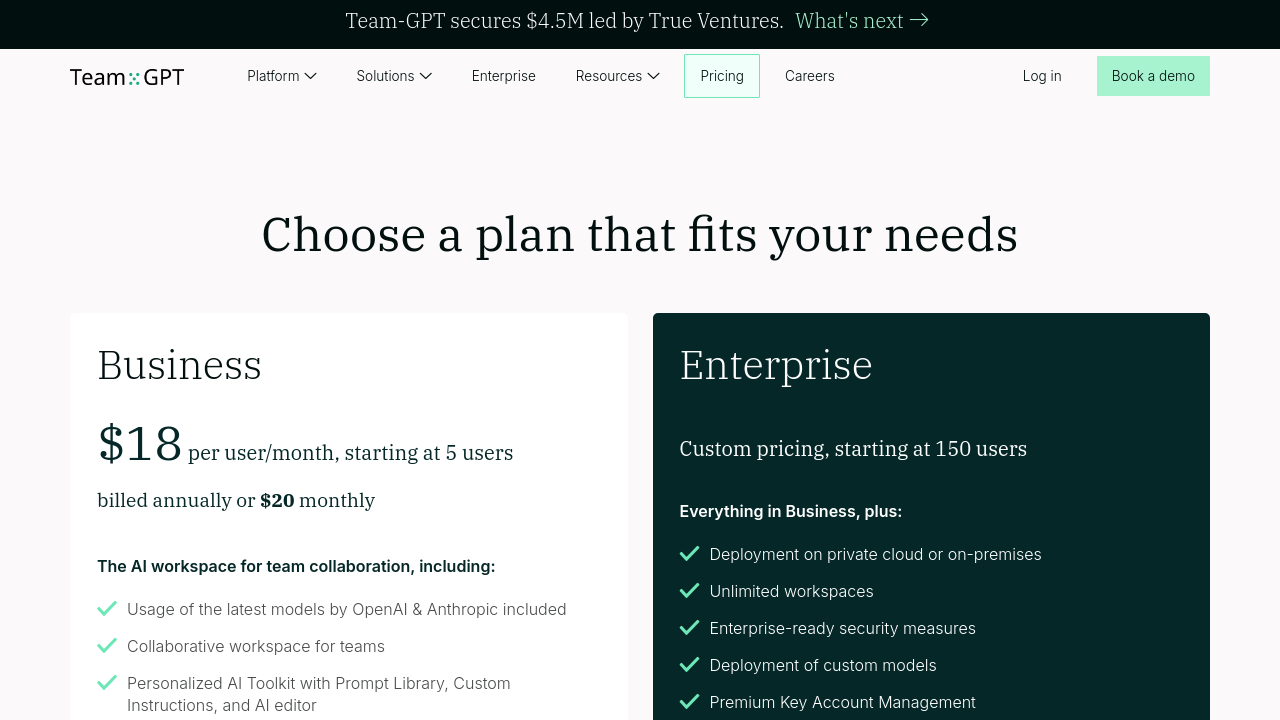 Organizations looking for tailored solutions can explore flexible pricing plans. The Business plan offers an affordable starting point with a collaborative workspace and an array of powerful AI integrations, while the Enterprise plan provides an option for private cloud or on-premise deployments with premium support and customizable features. For exclusive deals and more information, visit the Team-GPT Deals page.