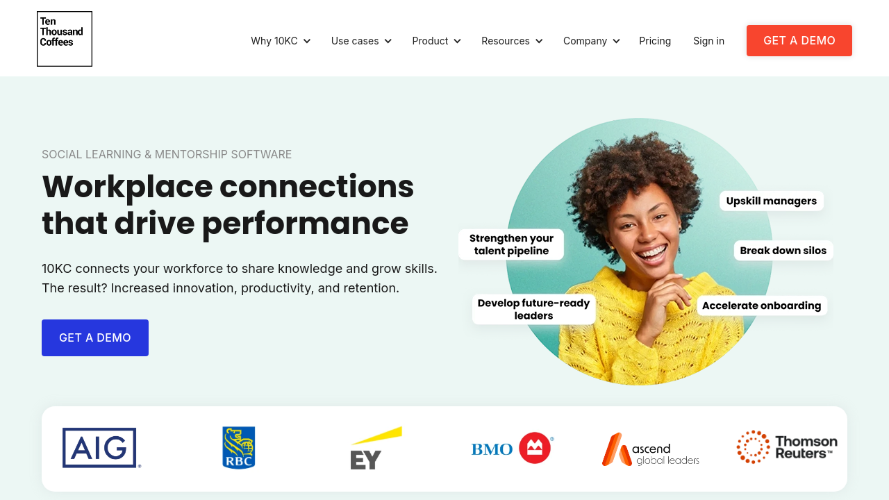 Ten Thousand Coffees is a powerful engagement and mentoring platform designed to foster essential relationships, drive talent development, and build a strong internal network. It enables organizations to create connections across functions, geographies, and levels, ensuring that every employee has the opportunity to grow and thrive within the company.